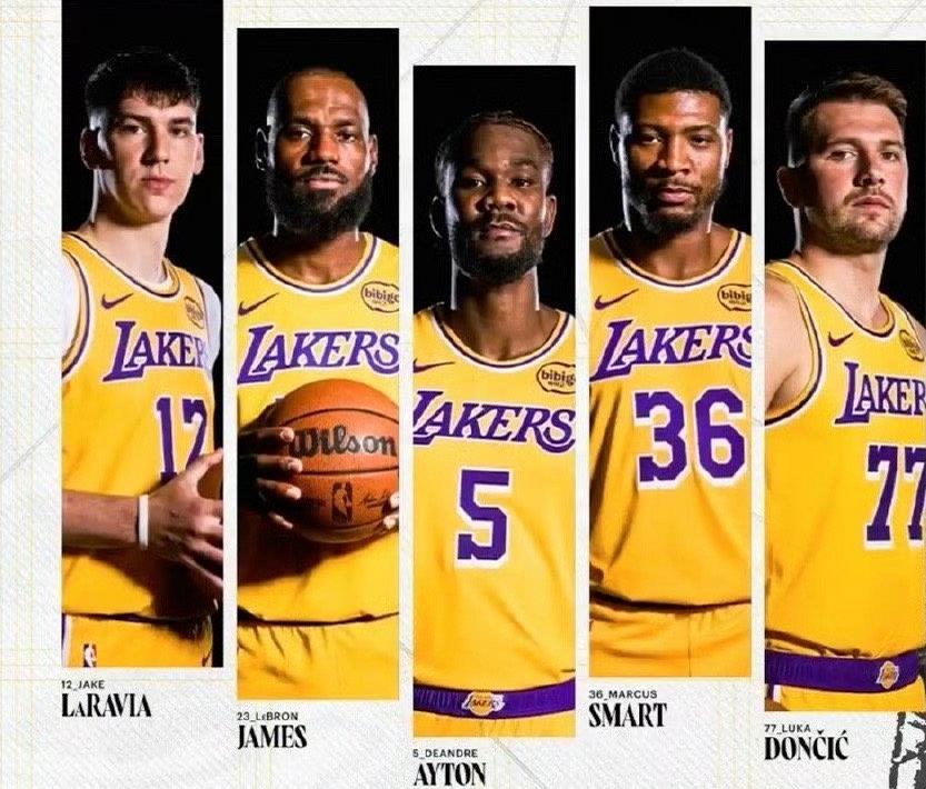 湖人:詹姆斯、拉拉维亚、艾顿、斯玛特、东契奇